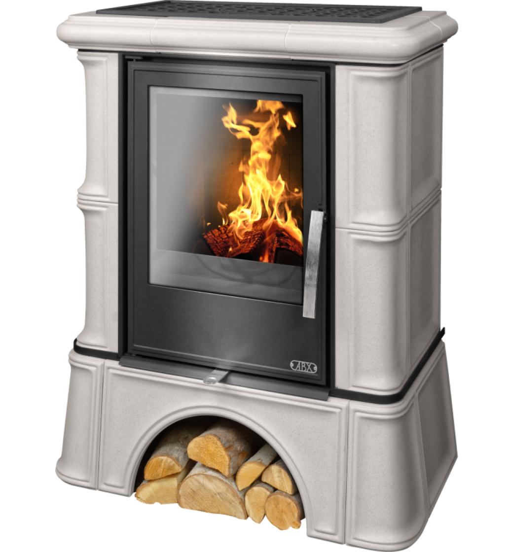 Kachlová dvouplášťová teplovzdušná (konvekční) kamna s kombi topeništěm (plech/litina) a s centrálním přívodem vzduchu. Ocelové topeniště má šamotovou vyzdívkou, litinová dvířka a litinový rošt.