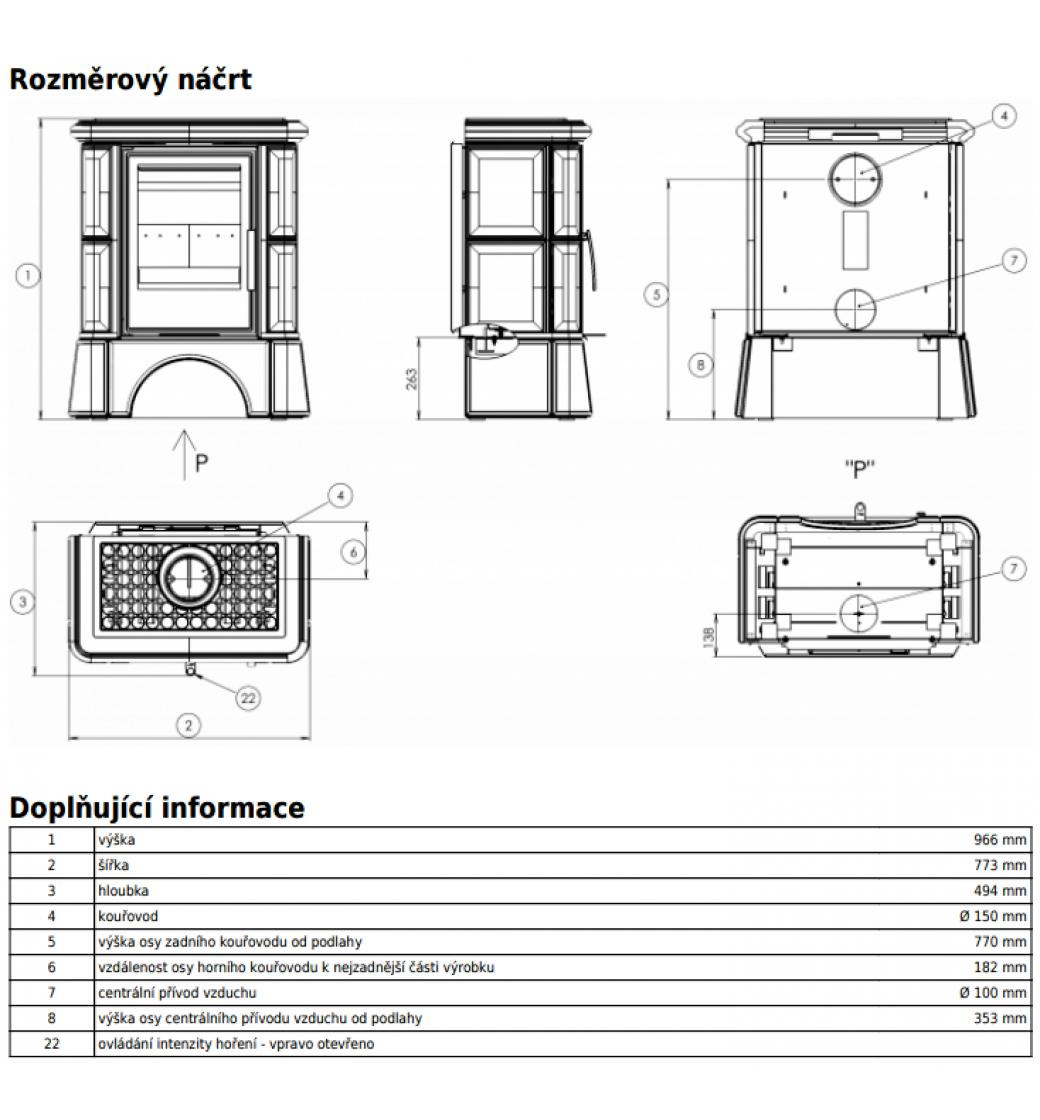 centrální přívod vzduchu o průměru 100 mm (nutno dokoupit přírubu, která se montuje na záda kamen)
