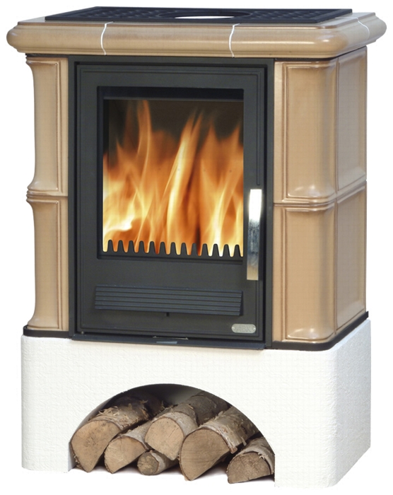 Kachlová kamna klasického designu s litinovým čelem a dvířky. Splňují nejpřísnější německé a rakouské normy. Možnost využití horního a zadního vývodu. Kamna mají možnost variace žuly a mastku na místo kachlů. S teplovodním výměníkem.