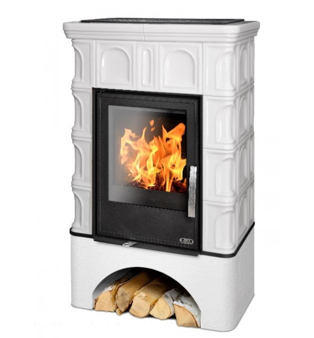 Kachlová dvouplášťová teplovzdušná (konvekční) kamna s kombi topeništěm (plech/litina) a s centrálním přívodem vzduchu. Ocelové topeniště má šamotovou vyzdívkou, litinová dvířka a litinový rošt.