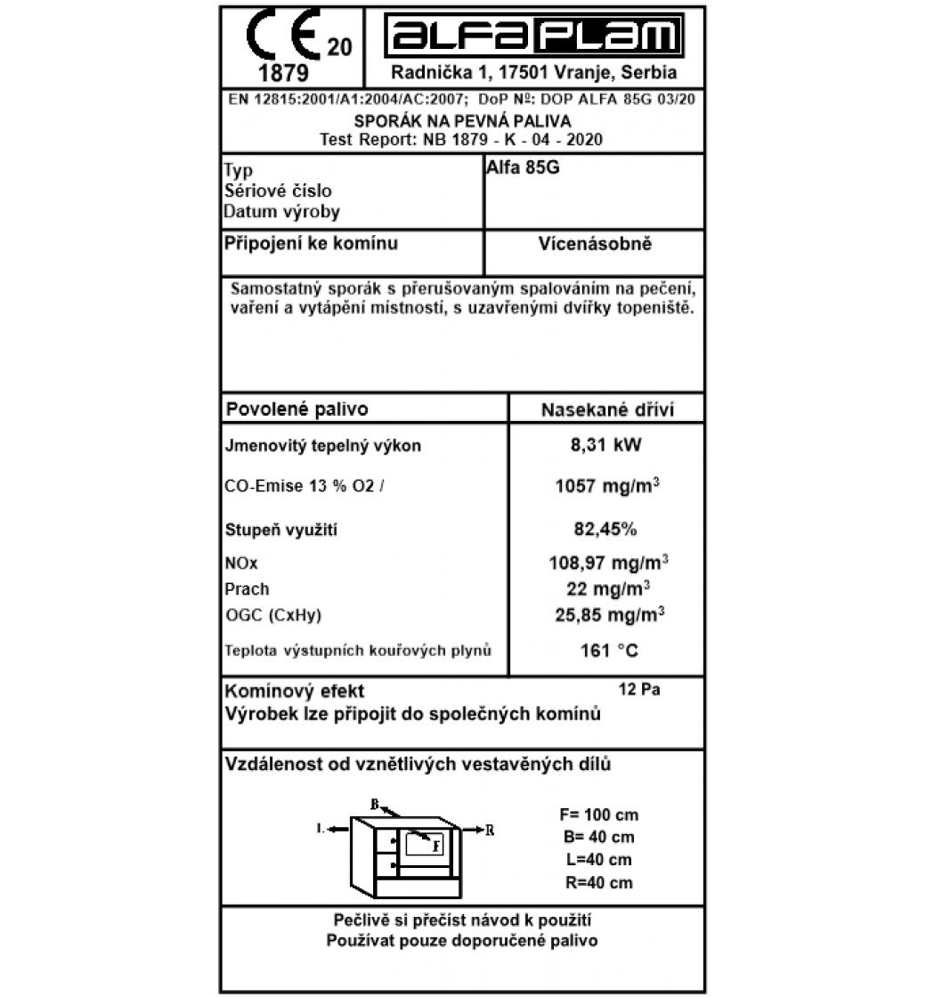 ALFA PLAM, sporák ALFA 85G ECO, 8,31 kW