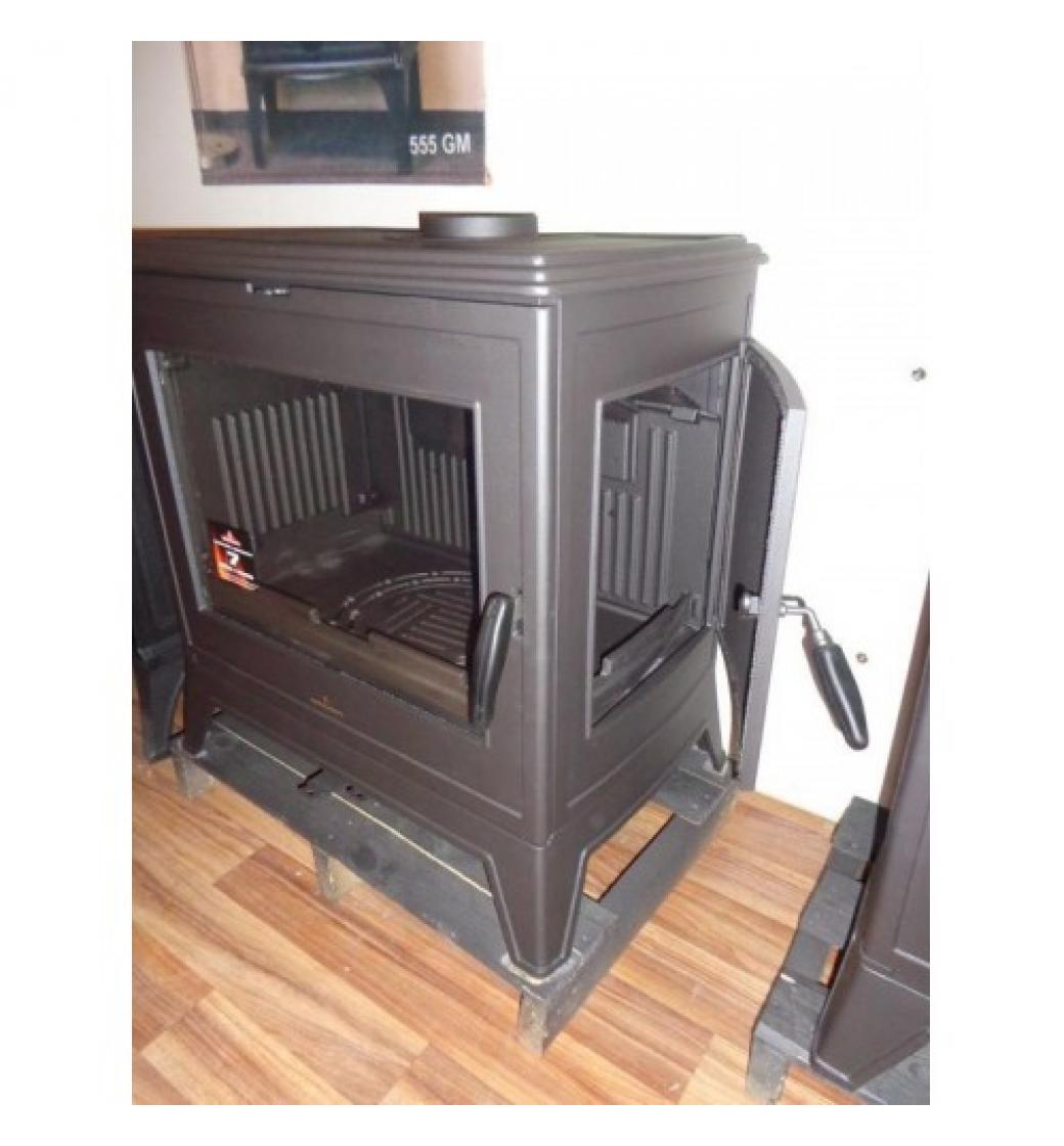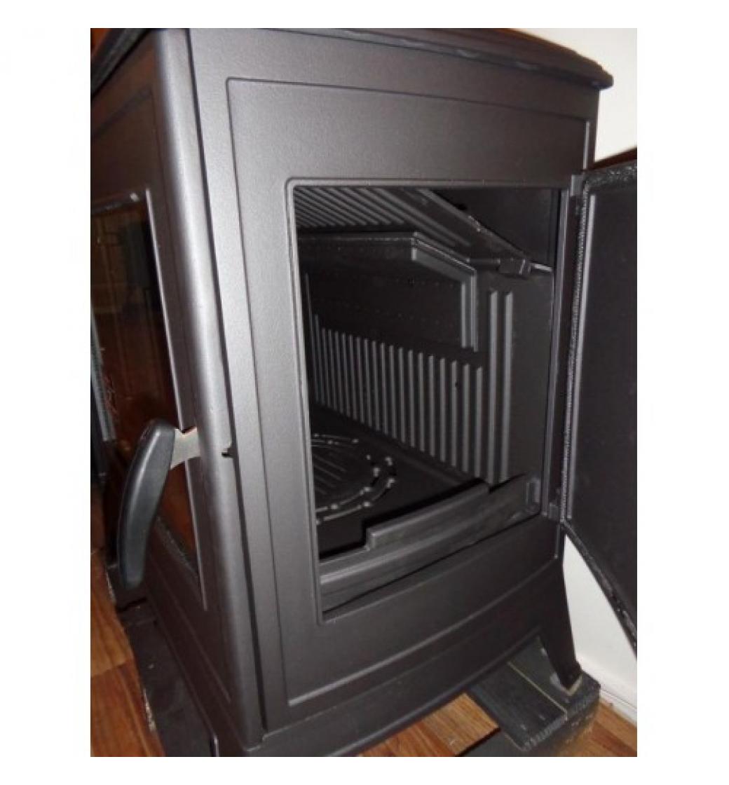 Litinová krbová kamna s bočním přikládáním o výkonu 14 kW, dvoustupňové spalování, celolitinové topeniště.