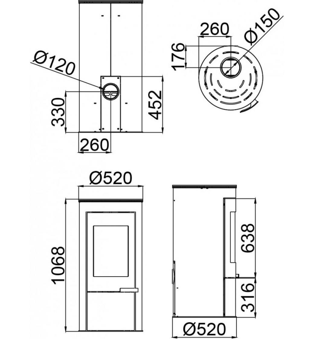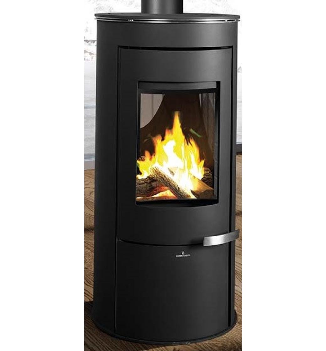 Moderní krbová kamna sloupového tvaru mají elegantní design a kvalitní provedení. V horní části kamen jsou umístěné akumulační tvarovky pro delší a rovnoměrnější předávání tepla do okolí. Ve spodní části kamen je uzaviratelný box na dřevo.