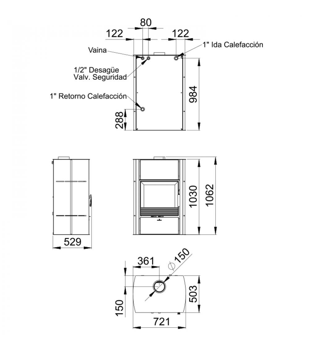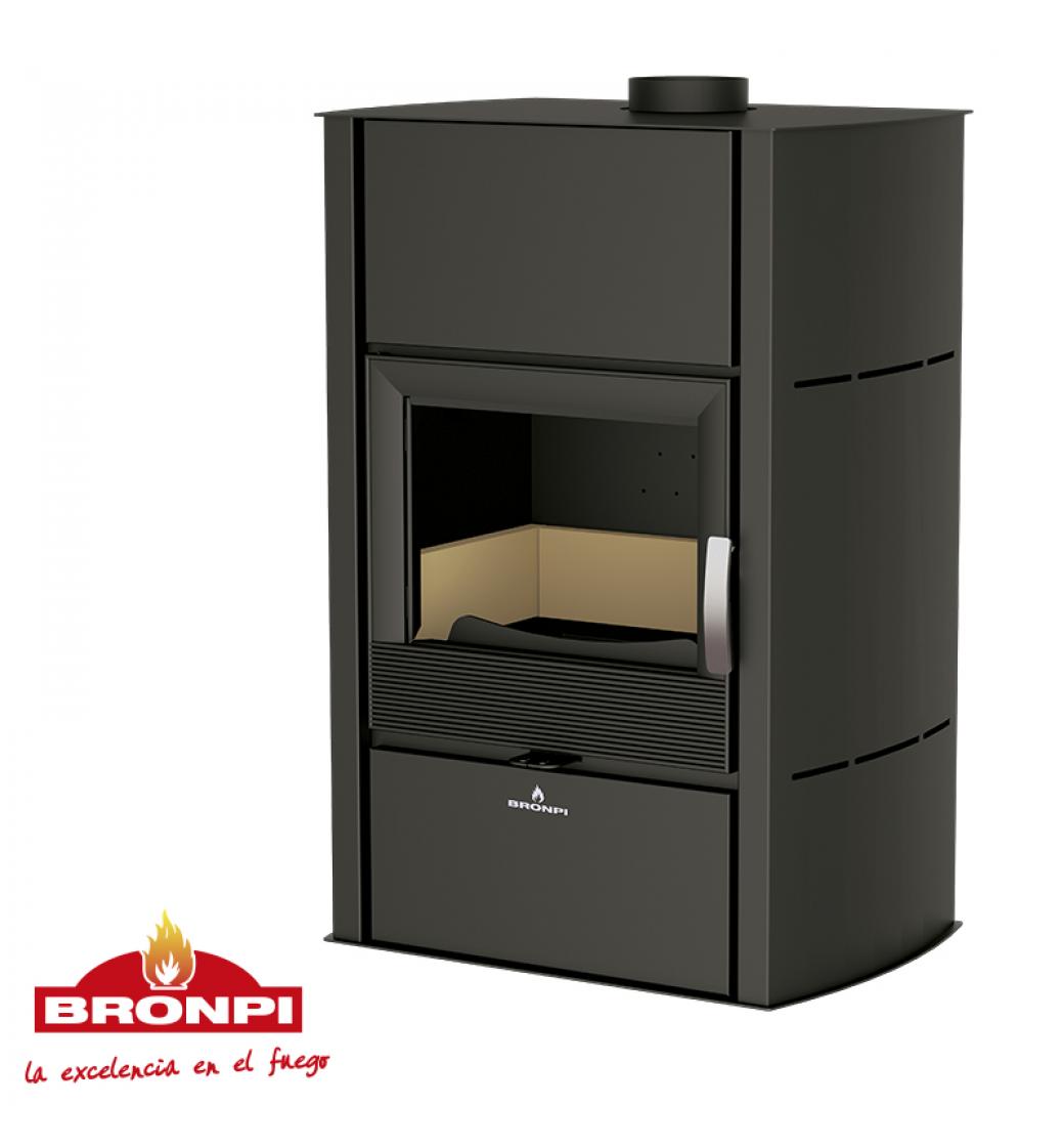 Kvalitní teplovodní krbová kamna španělského výrobce BRONPI. Výkon kamen je 3,2kW do vzduchu a 10,6kW do vody. Průměr kouřovodu 150mm.