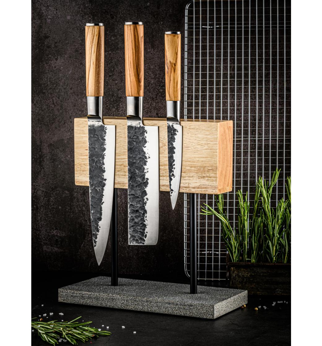 FORGED Olive - 3-dílná sada nožů: kuchařský nůž, japonský nůž na zeleninu, univerzální nůž