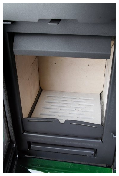 Ve spodní části spalovacího komory je zpravidla umístěn jednoduchý, pevný litinový rošt. Před roštem je umístěna zábrana proti vypadávání a sesouvání paliva na dvířka (čelní sklo). Pod roštem je prostor pro popelníkovou zásuvku. Prostor ve spodní části kamen může být využit jako zásobník paliva. Opláštění kamen může být provedeno z ocelového plechu, keramických dlaždic popř. obloženo silnostěnnými kachlemi nebo přírodním kamenem. Ocelová konstrukce kamen včetně plechových obkladů je chráněna speciální žáruvzdornou barvou.