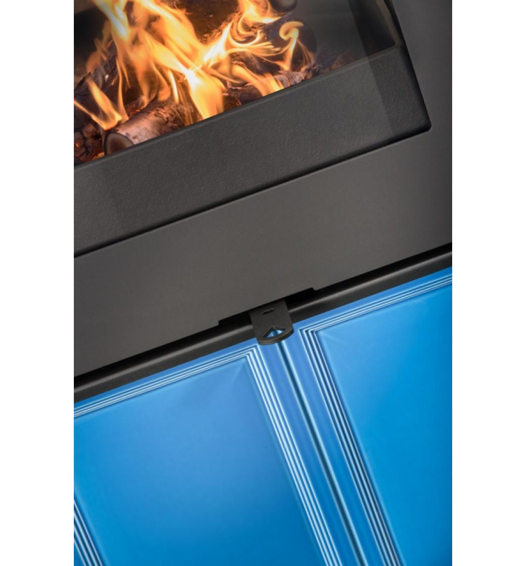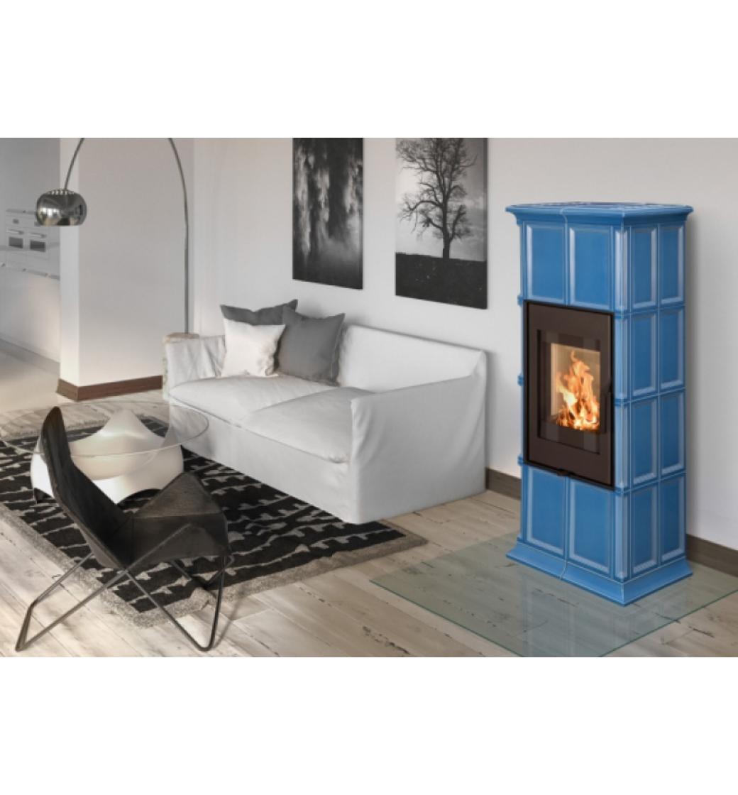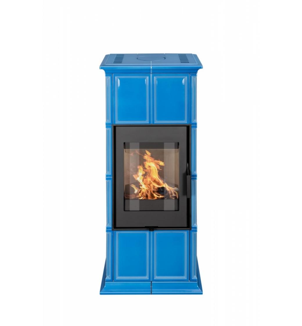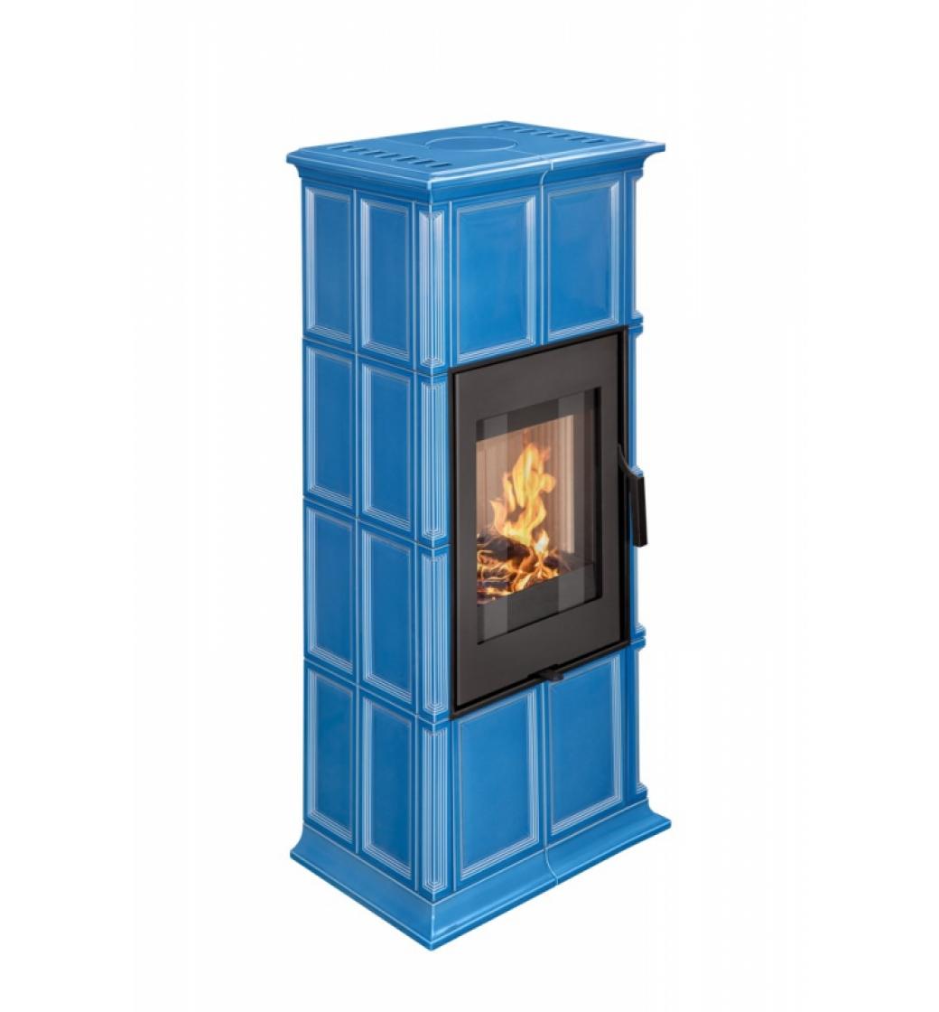 - Keramika kachlových kamen GREMO 1 na obrázku je v odstínu glazury 22202 Pomněnka lesklá