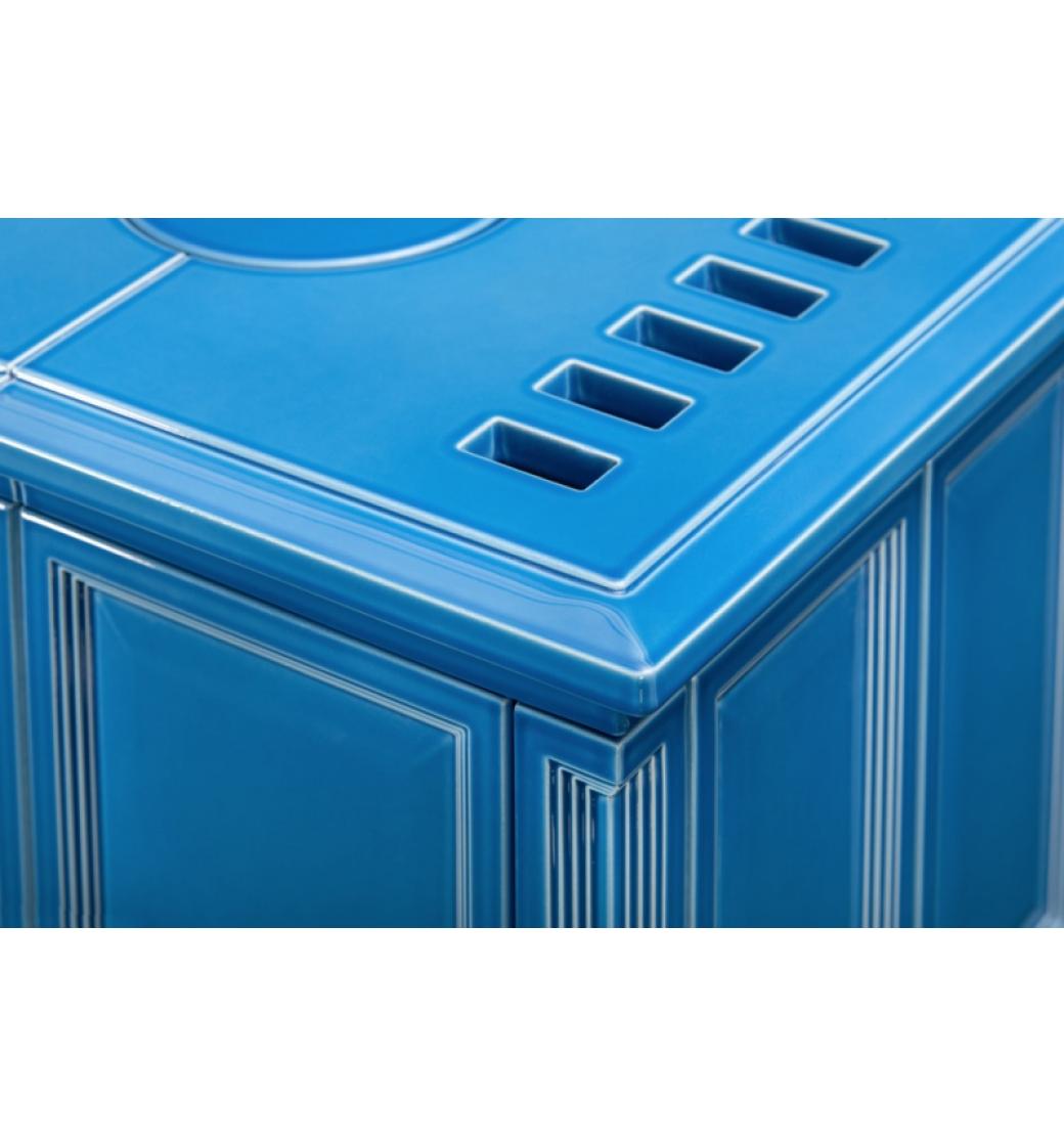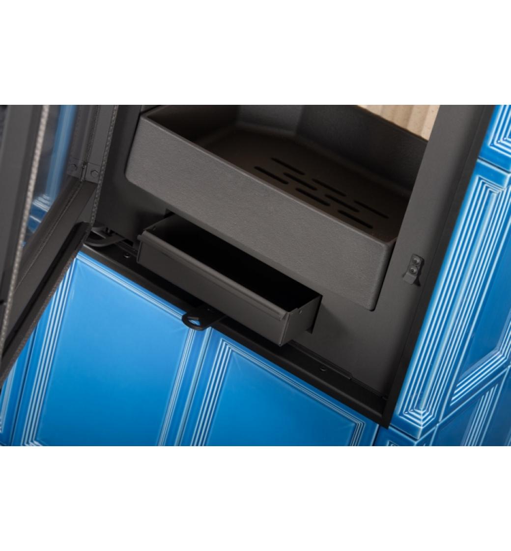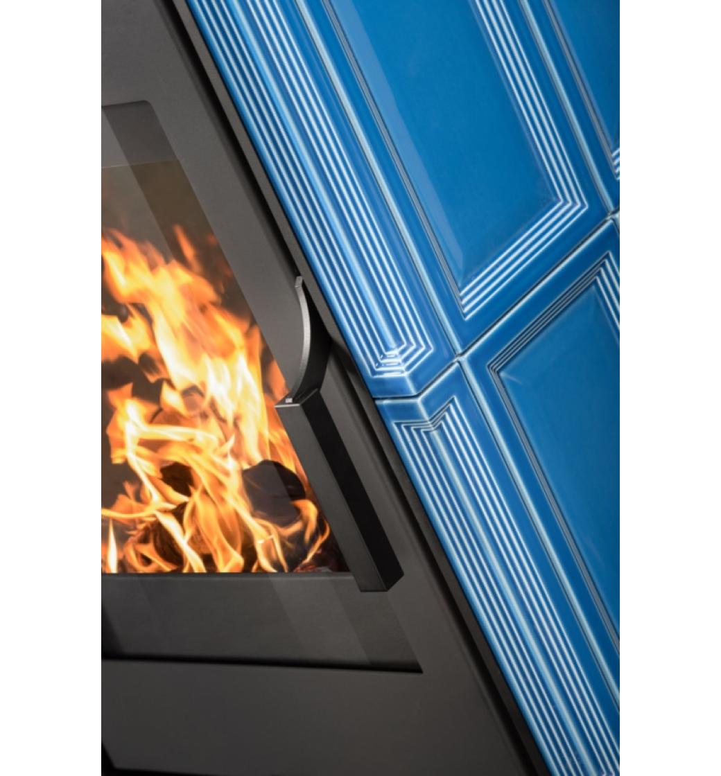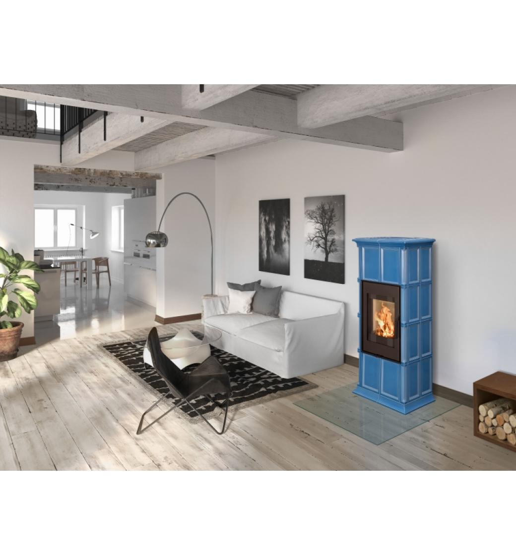 - Keramika kachlových kamen GREMO 1 na obrázku je v odstínu glazury 22202 Pomněnka lesklá