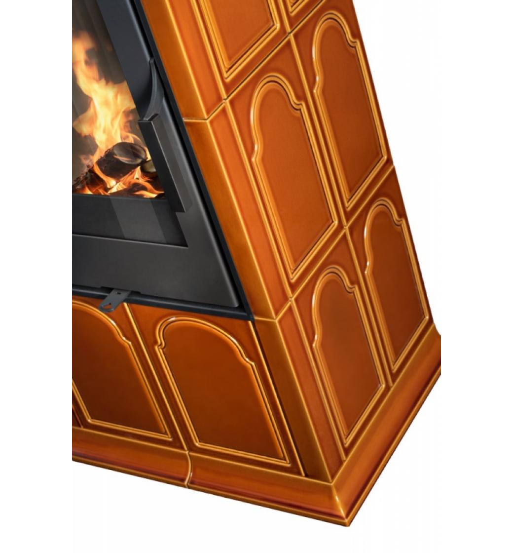 - Keramika kachlových kamen GREMO 2 na obrázku je v odstínu glazury 67300 Hnědá srnčí
