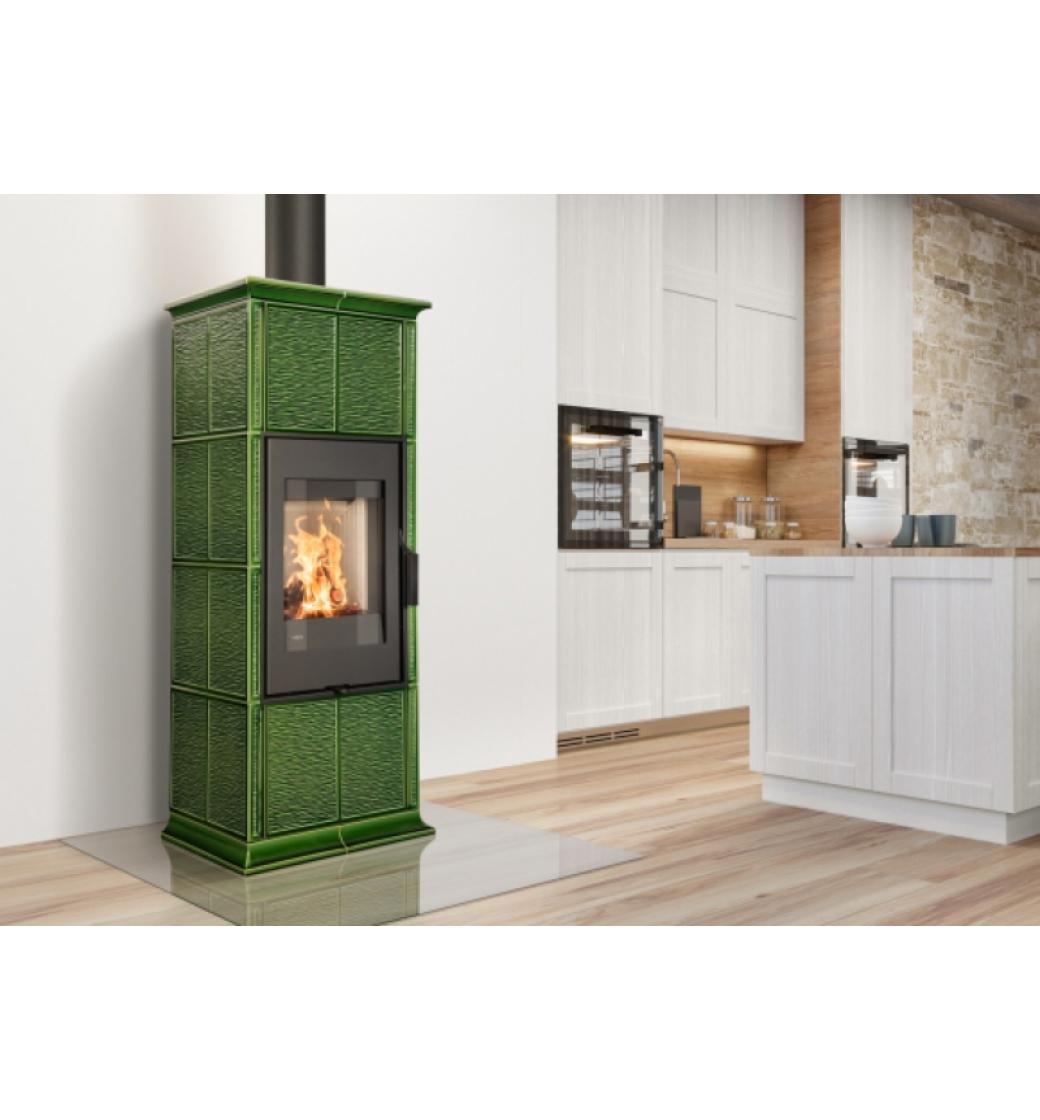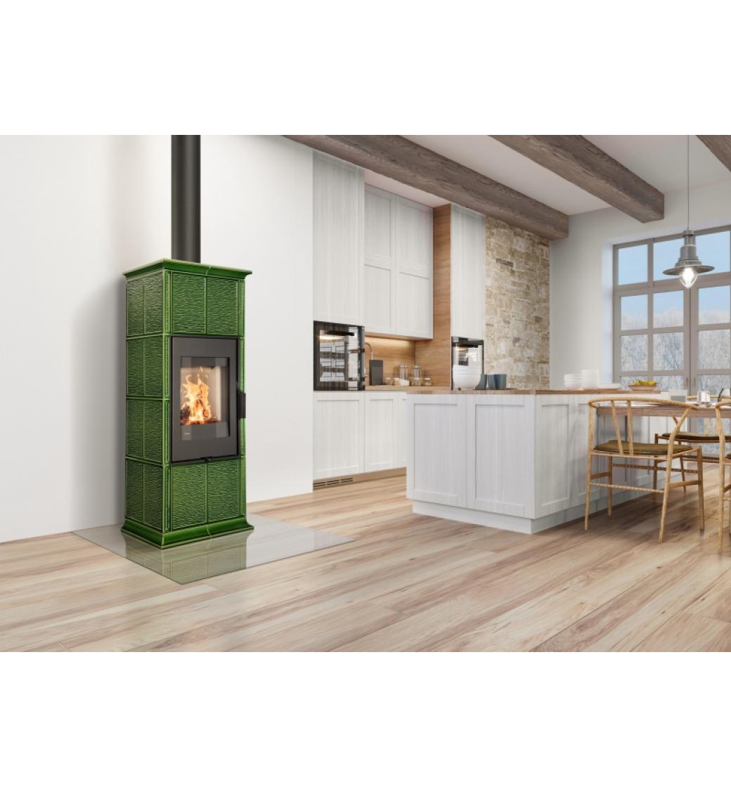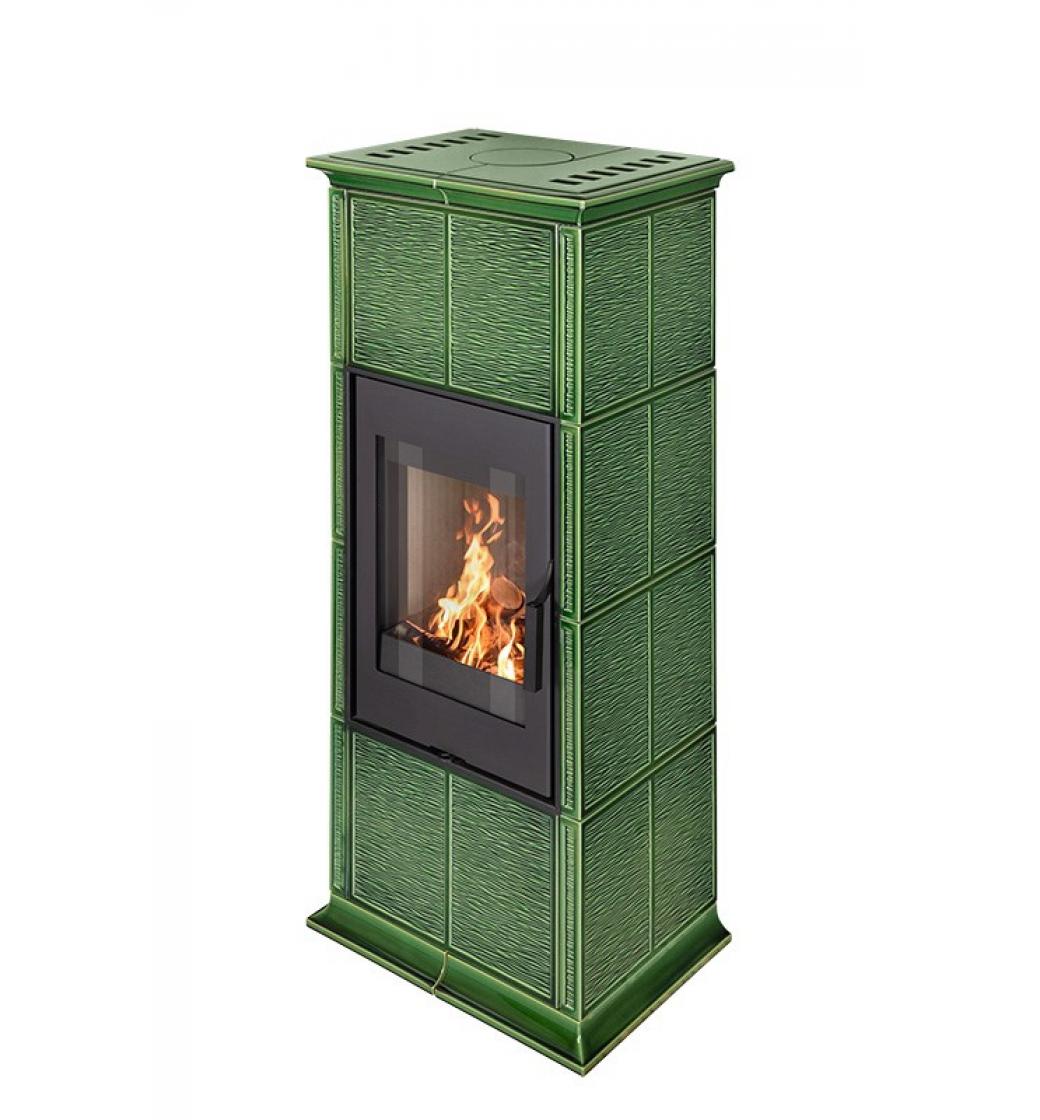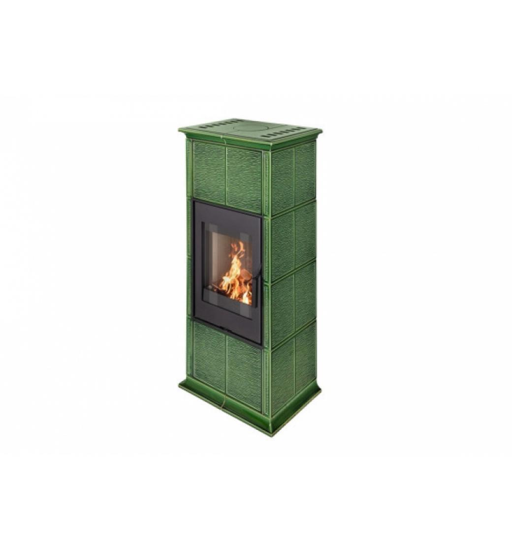 - Keramika kachlových kamen GREMIO 3 na obrázku je v odstínu glazury 19301 Zelená šumavská