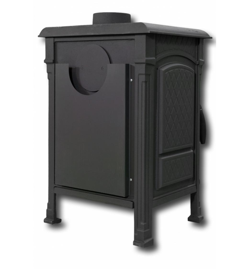 Popelník je umístěný pod vkládacími dvířky. Kamna mají pohyblivý rošt, primární regulátor vzduchu(ideální při zatápění) je umístěný ve spodní části kamen, sekundární regulátor vzduchu je umístěný nad dvířky. Dvířka mají otvíravost 180° což umožňuje pohodlné přikládání.