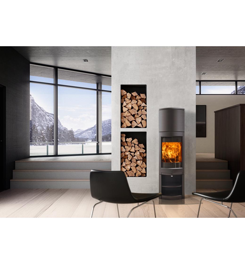 Jøtul F 361 Advance High Top jsou vysoká kamna s litinovým podstavcem a horním nástavcem, který lze instalovat s akumulačními prstenci (příslušenství na objednávku).