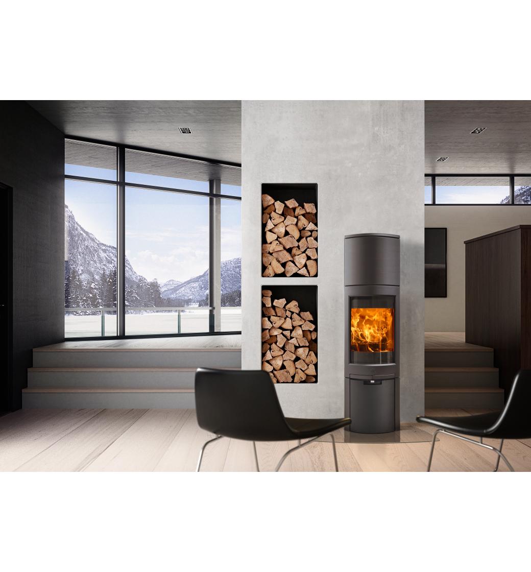 Jøtul F 368 Advance High Top jsou vysoká kamna s litinovým podstavcem a horním nástavcem, který lze instalovat s akumulačními prstenci (příslušenství na objednávku).