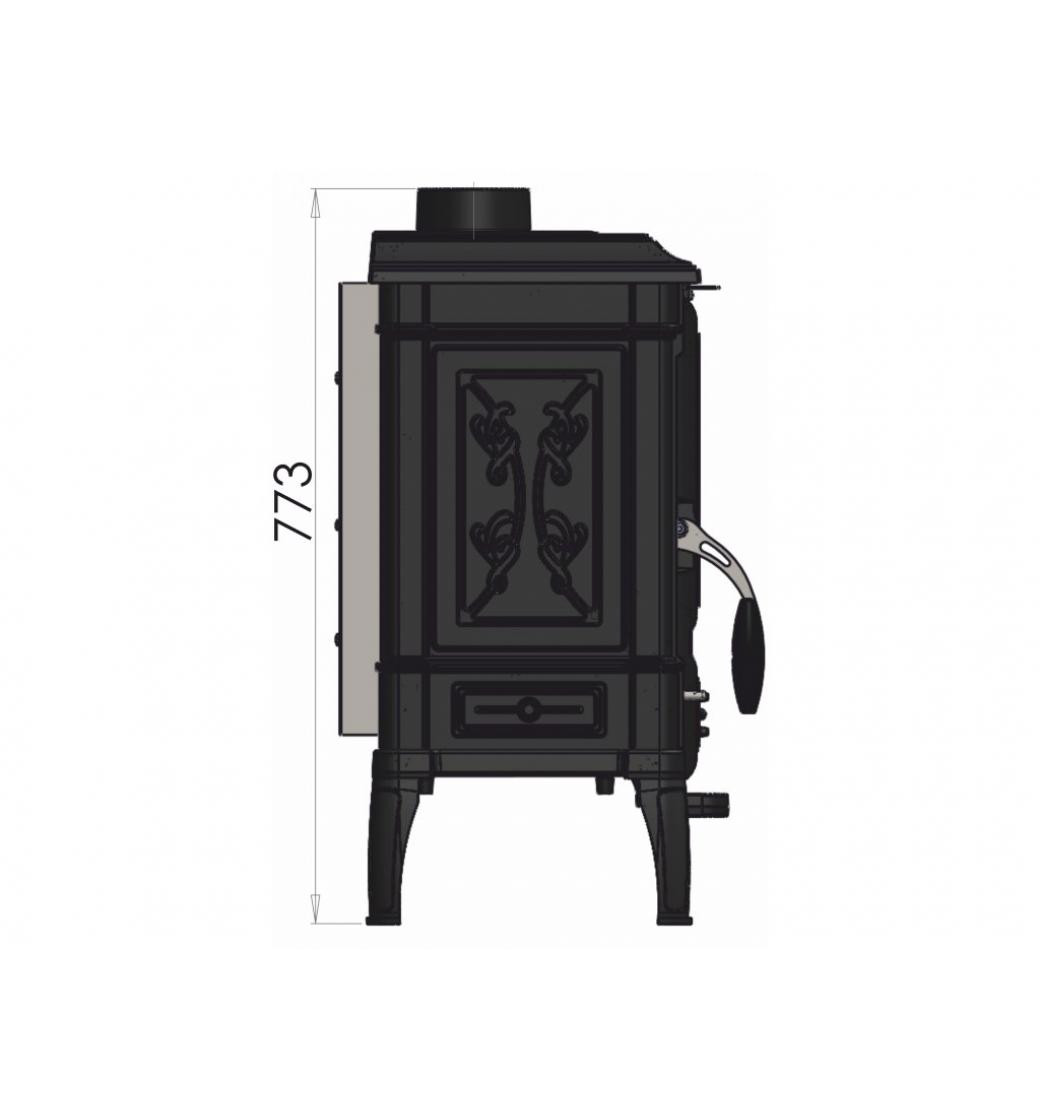 Rozměry dvířek topeniště (š x v): 225 x 320 mm