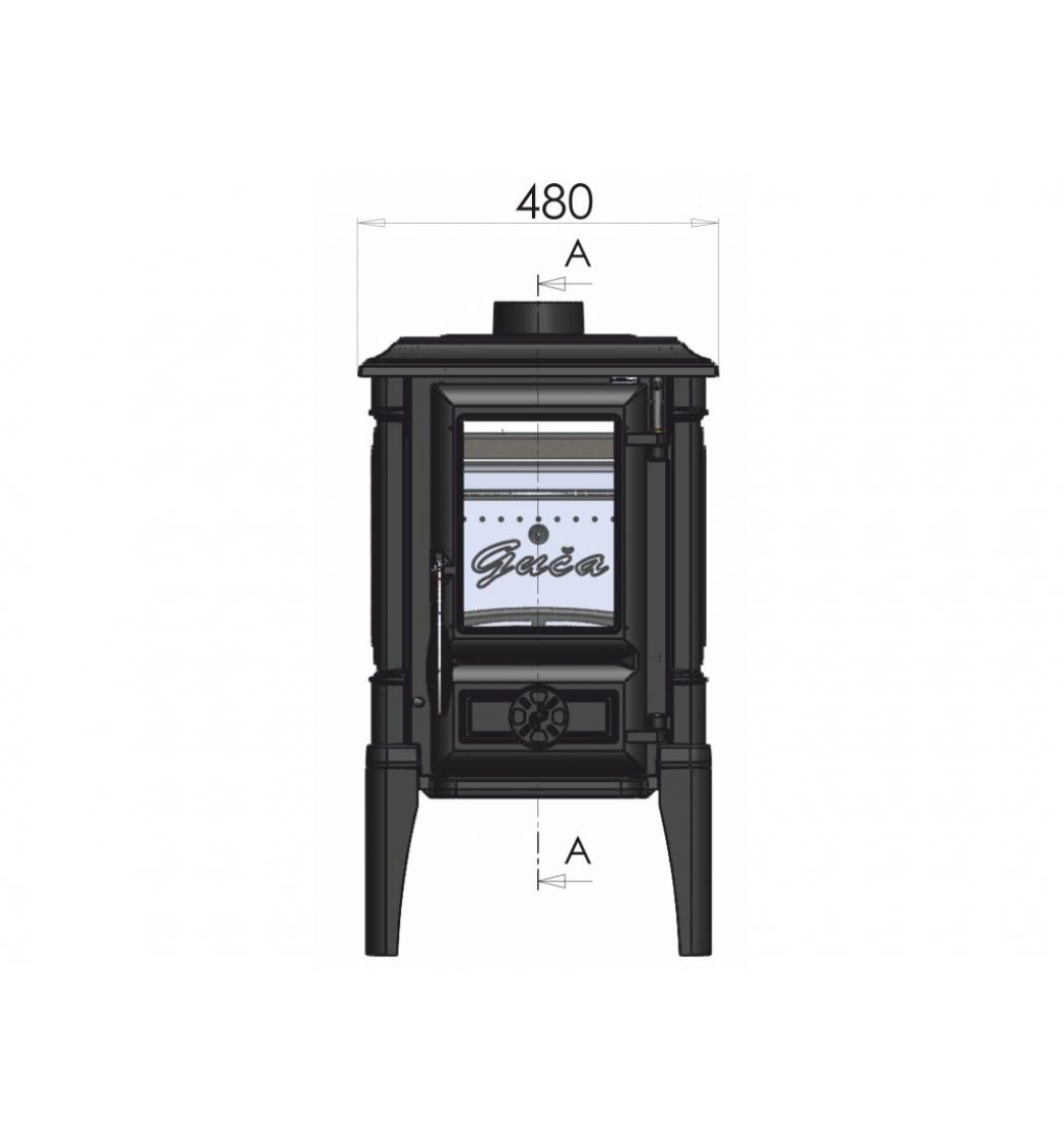Robustní kvalitně zpracovaná litinová kamna s výkonem 10 kW vytopí až 200 m3. Kamna mají otočný litinový rošt, izolovanou kliku dvířek, ve kterých je samouzavírací pružina. Průměr kouřovodu je 120 mm, kamna mají horní i zadní vývod spalin. Jako palivo lze používat dřevo nebo dřevěné brikety.