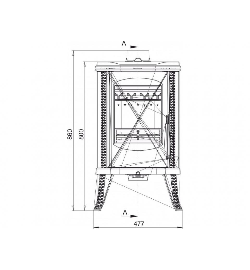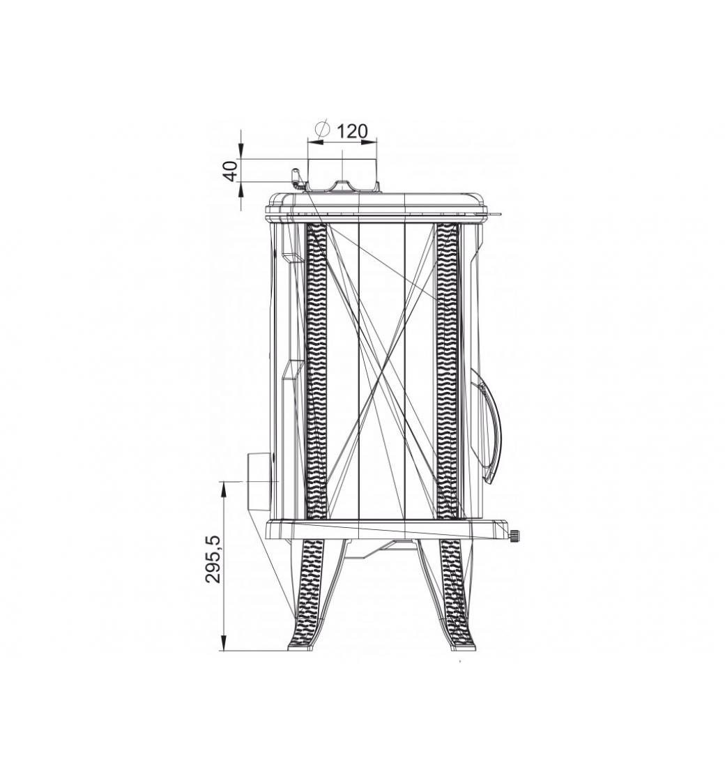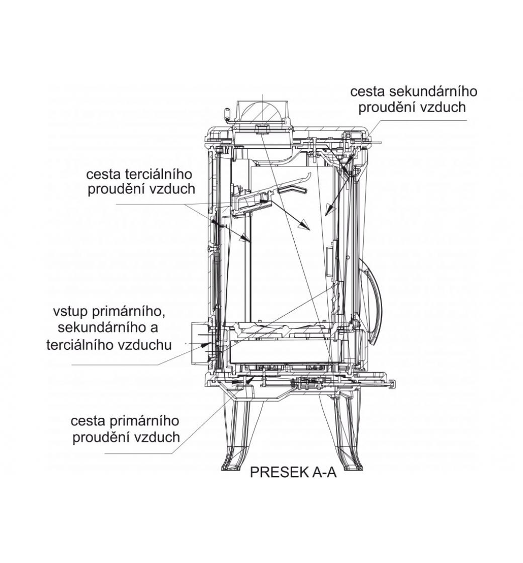 Robustní kvalitně zpracovaná litinová kamna s výkonem 7kW vytopí až 140 m3. Kamna mají otočný litinový rošt, izolovanou kliku dvířek, ve kterých je samouzavírací pružina. Průměr kouřovodu je 120 mm, kamna mají horní i zadní vývod spalin. Jako palivo lze používat dřevo nebo dřevěné brikety.