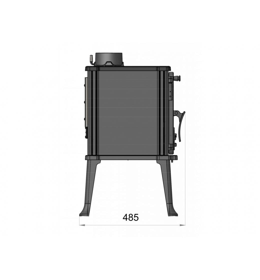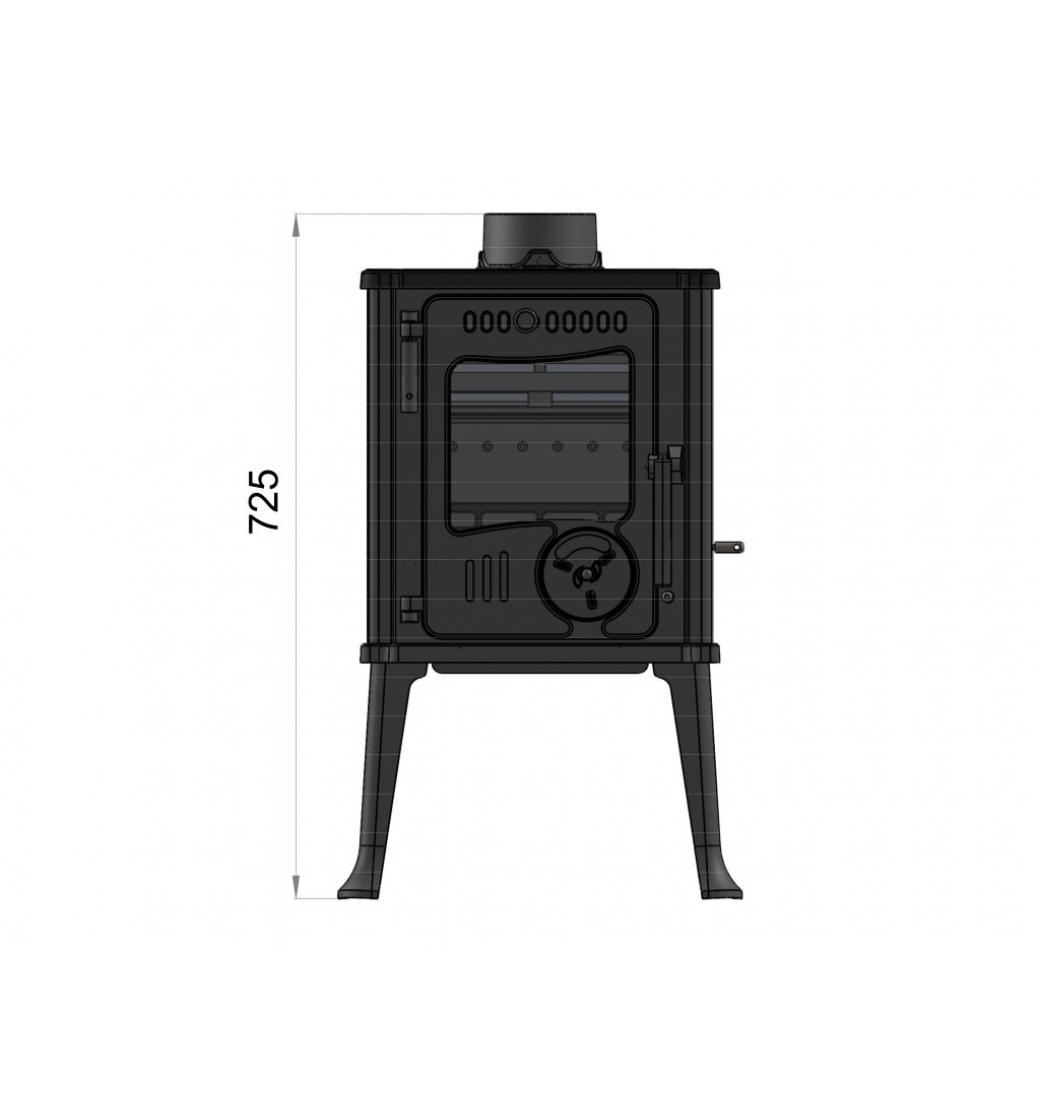 Robustní kvalitně zpracovaná litinová kamna s výkonem 6kW vytopí až 120 m3. Kamna mají otočný litinový rošt, izolovanou kliku dvířek, ve kterých je samouzavírací pružina. Průměr kouřovodu je 120 mm, kamna mají horní vývod spalin. Jako palivo lze používat dřevo nebo dřevěné brikety.