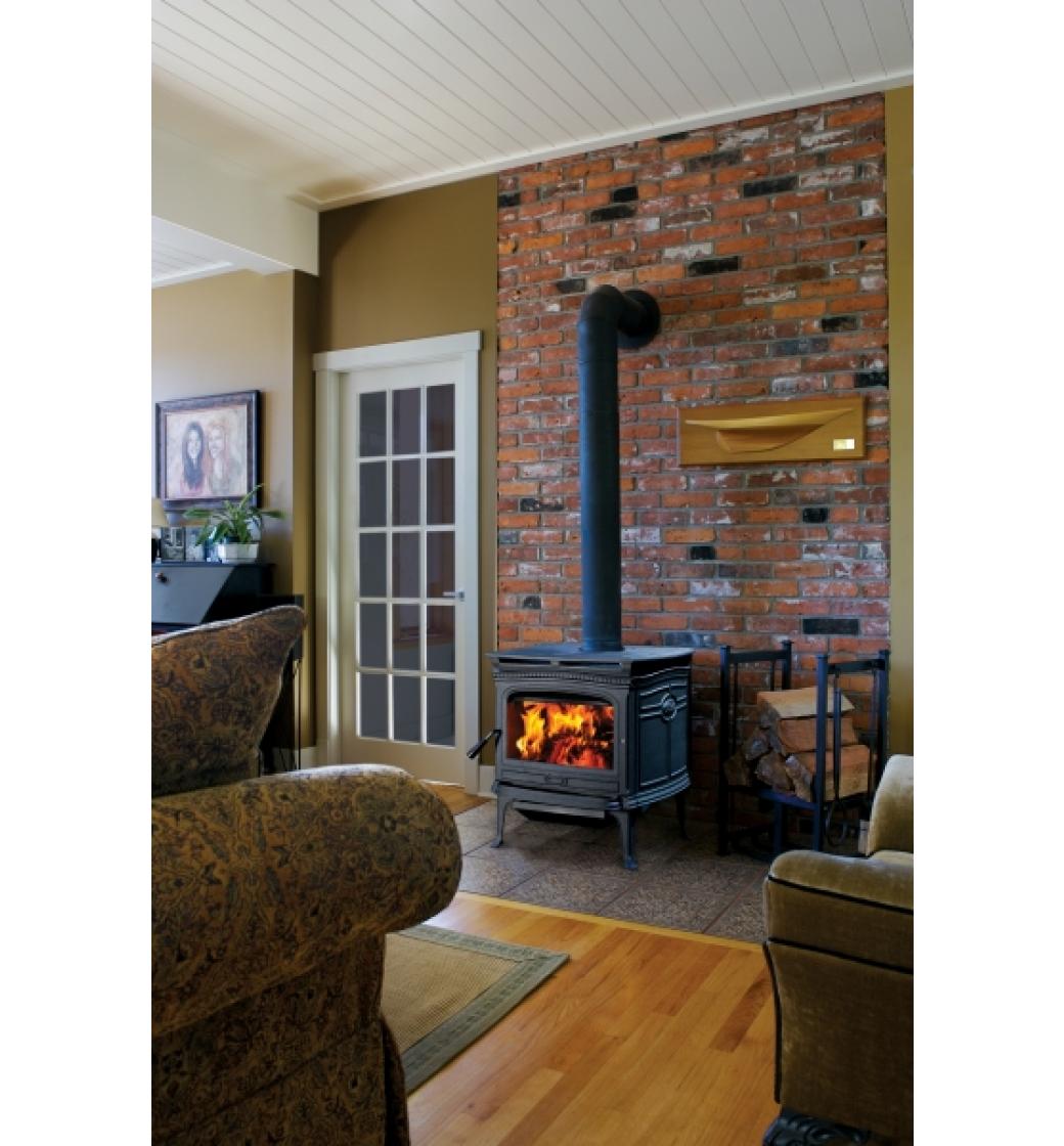 Kanadská krbová kamna Pacific Energy ALDERLEA T5 o výkonu 16kW, dvojitým pláštěm, dvojitým spalováním, stylovým historickým vzhledem jsou s dlouhou dobou hoření vhodná k vytápění velkých prostor o výměře až 200m2. Elegantní a kvalitní kanadská litinová krbová kamna ALDERLEA T5 jsou navíc opatřena velice praktickými posuvnými plochami pro vaření, které nikterak neruší celkový vzhled kamen.