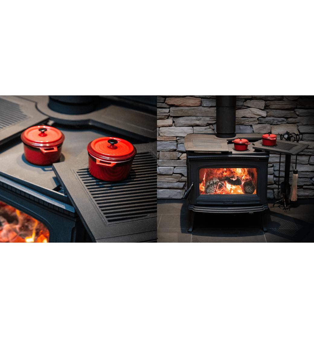 Kanadská krbová kamna Pacific Energy ALDERLEA T6 s výkonem 22 kW, dvojitým pláštěm, dvojitým spalováním, stylovým historickým vzhledem jsou a dlouhou dobou hoření jsou vhodná k vytápění velkých prostor o výměře až 200m2. Elegantní a kvalitní kanadská litinová krbová kamna ALDERLEA T6 jsou navíc opatřena velice praktickými posuvnými plochami pro vaření, které nikterak neruší celkový vzhled kamen.