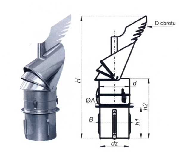 Komínová hlavice K30 je pouze v průměrech 150, 200 a 250 mm reagovat