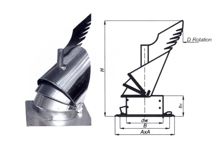 - Ke každé hlavici dodáváme dva vzhledově odlišné směrovky, které hlavici otáčejí ve směru větru.