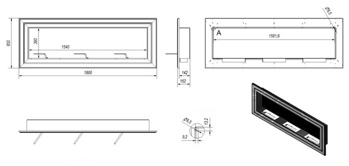 Rozměry v x š x h: 650 x 1500 x 162 mm