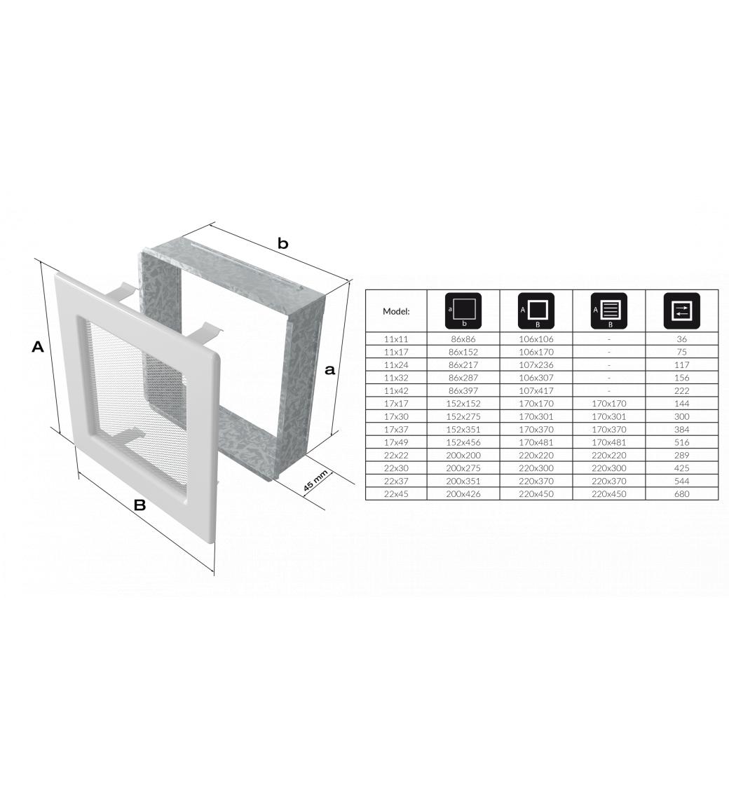 KRATKI Krbová mřížka s uzavíratelnou žaluzií 17 x 37 cm