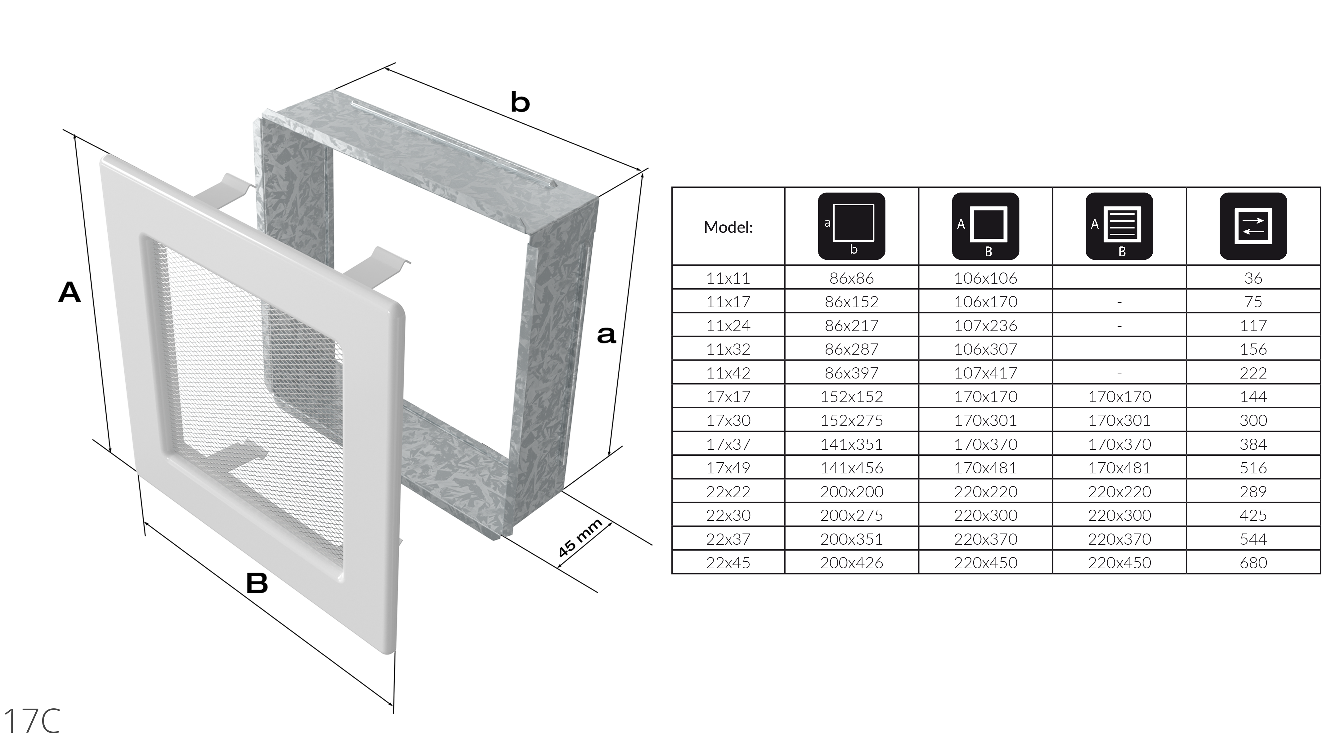 KRATKI mřížka 17x17 cm krémová
