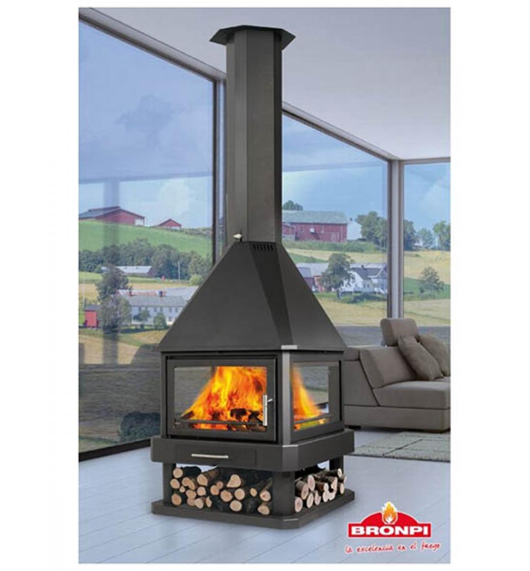 Vysoce kvalitní krbová kamna - krbové ohniště exkluzivního designu se čtyřstranným prosklením od španělského výrobce kamen a krbů Bronpi. Krb Huelva nabízí maximální požitek z ohně díky velkému prosklení zepředu, zezadu i z boků. Jedná se o krbové ohniště pro přímé horní napojení do komína.