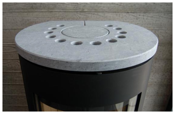 Na horní část krbových kamen je možné pořídit kamennou desku (mastek nebo pískovec), fotografie níže v galerii. Tyto světlé kameny tvoří krásný kontrast s černým pláštěm kamen.