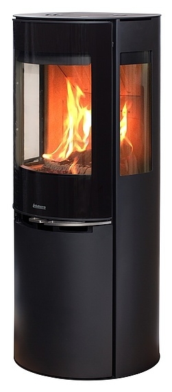 Kulatá konvekční krbová kamna Aduro 9-5 Lux jsou zvýšenou modifikací základního modelu Aduro 9. Kamna mají na obou stranách spalovací komory velké prosklené otvory, které zajišťují maximální možnost pohledu na krásnou hru plamenů doslova ze všech stran. Design podtrhuje lesklé keramické sklo přes celá dvířka a nerezová klička s ovladačem vzduchu.