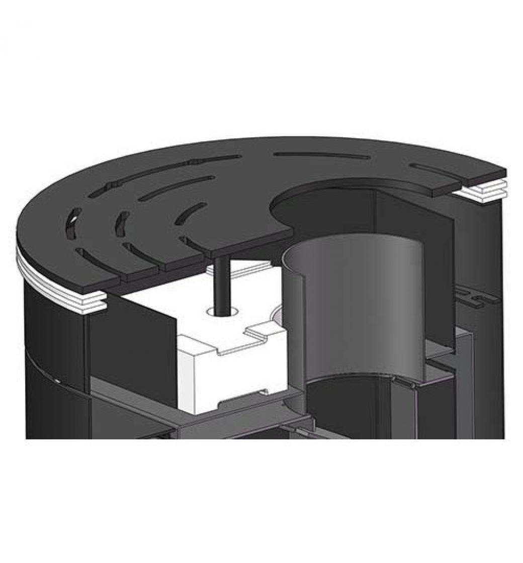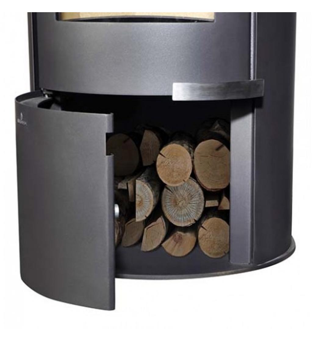 Moderní krbová kamna sloupového tvaru mají elegantní design a kvalitní provedení. V horní části kamen jsou umístěné akumulační tvarovky pro delší a rovnoměrnější předávání tepla do okolí. Ve spodní části kamen je uzaviratelný box na dřevo.