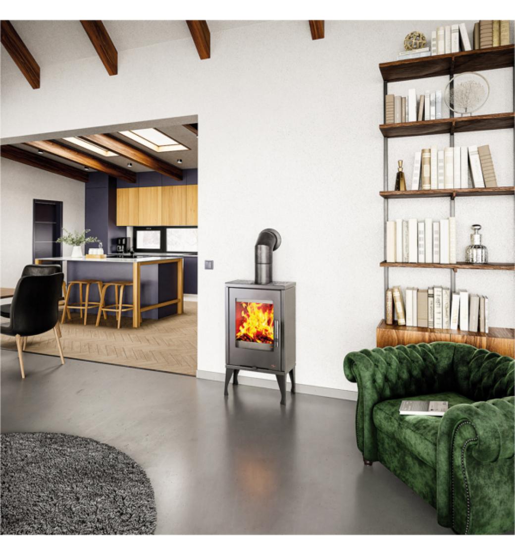 Kamna na dřevo o výkonu 3 – 6,3 kW mají externí přívod vzduchu, možnost ho uzavřít (když v kamnech netopíte, aby vám neunikal ohřátý vzduch z místnosti) a terciární spalování. Vyhřejí prostor do 114 m3.