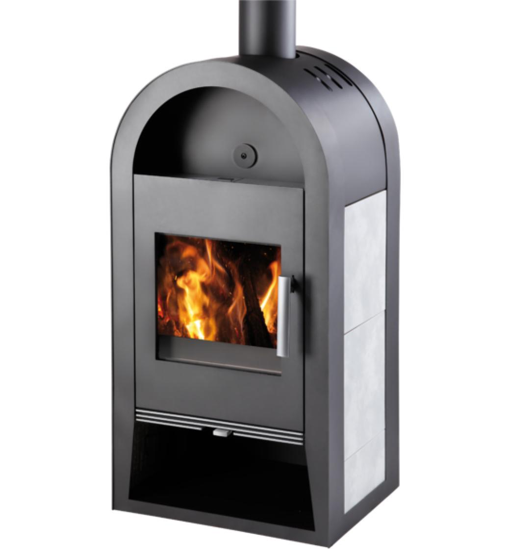 Když se řekne krbová kamna, vybaví se mnoha lidem právě tyto tradiční tvary. Krbová kamna Nivala s výměníkem dodáváme v černém nebo antracitovém provedení, s béžovou nebo šedou dlažbou na boku.