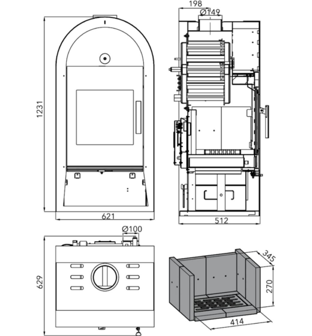 | Palivo: | dřevo, dřevěné brikety, uhelné brikety |