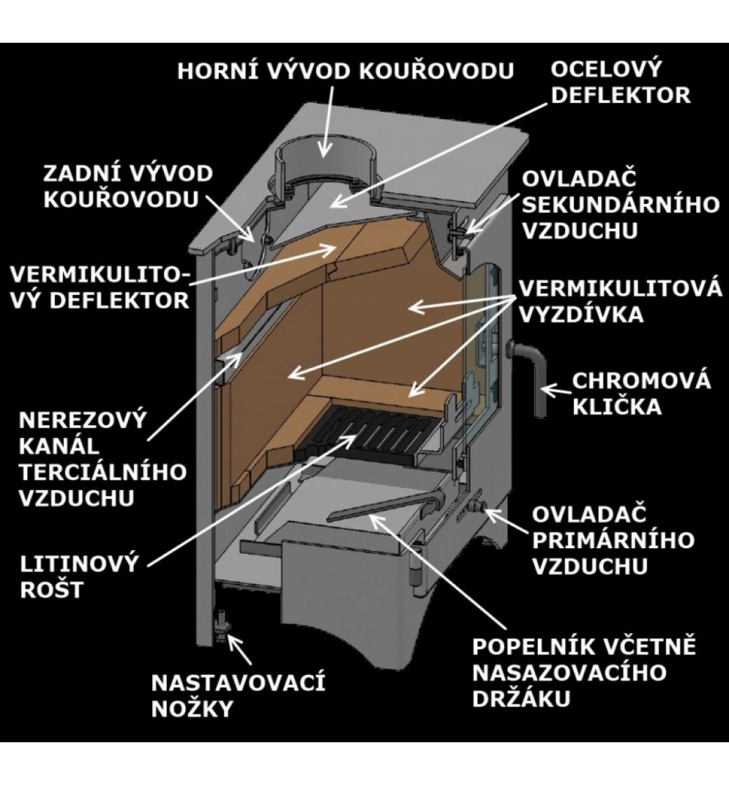 - velká spalovací komora - možné vkládat polena až 36 cm