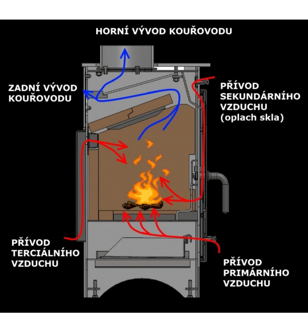 | Napojení kouřovodu: | horní + zadní |