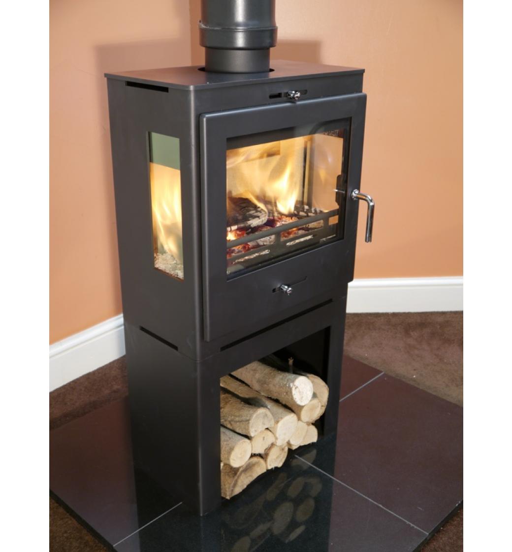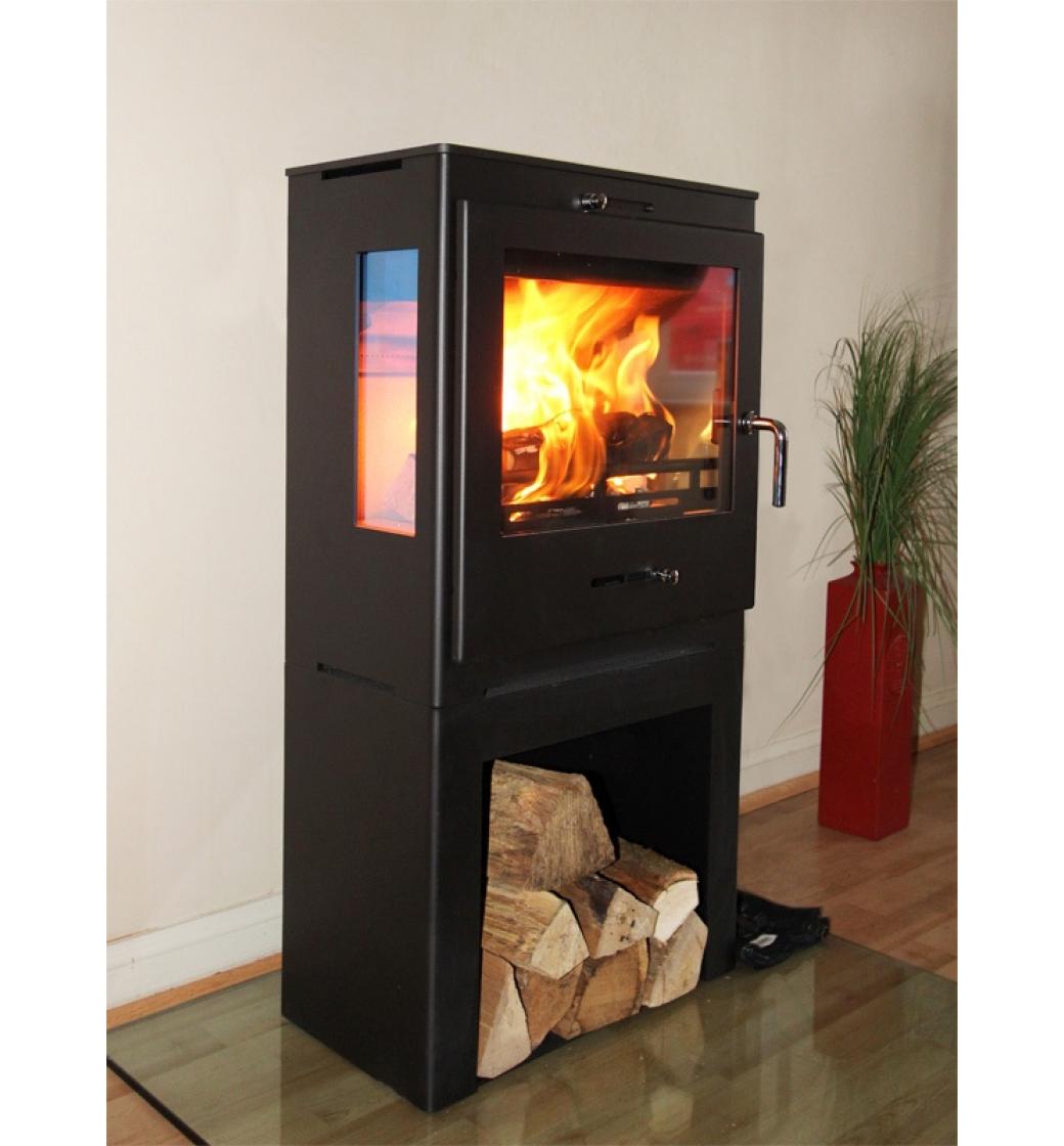 Jedná se o velmi odolná krbová kamna vyrobena z ušlechtilé kamnářské oceli s prosklením ze tří stran, takže můžete sledovat hru plamenů i z boků kamen. Jsou to v podstatě krbová kamna hede 1 Panorama postavena na podstavec, který zároveň slouží jako prostor pro skladování dřeva.