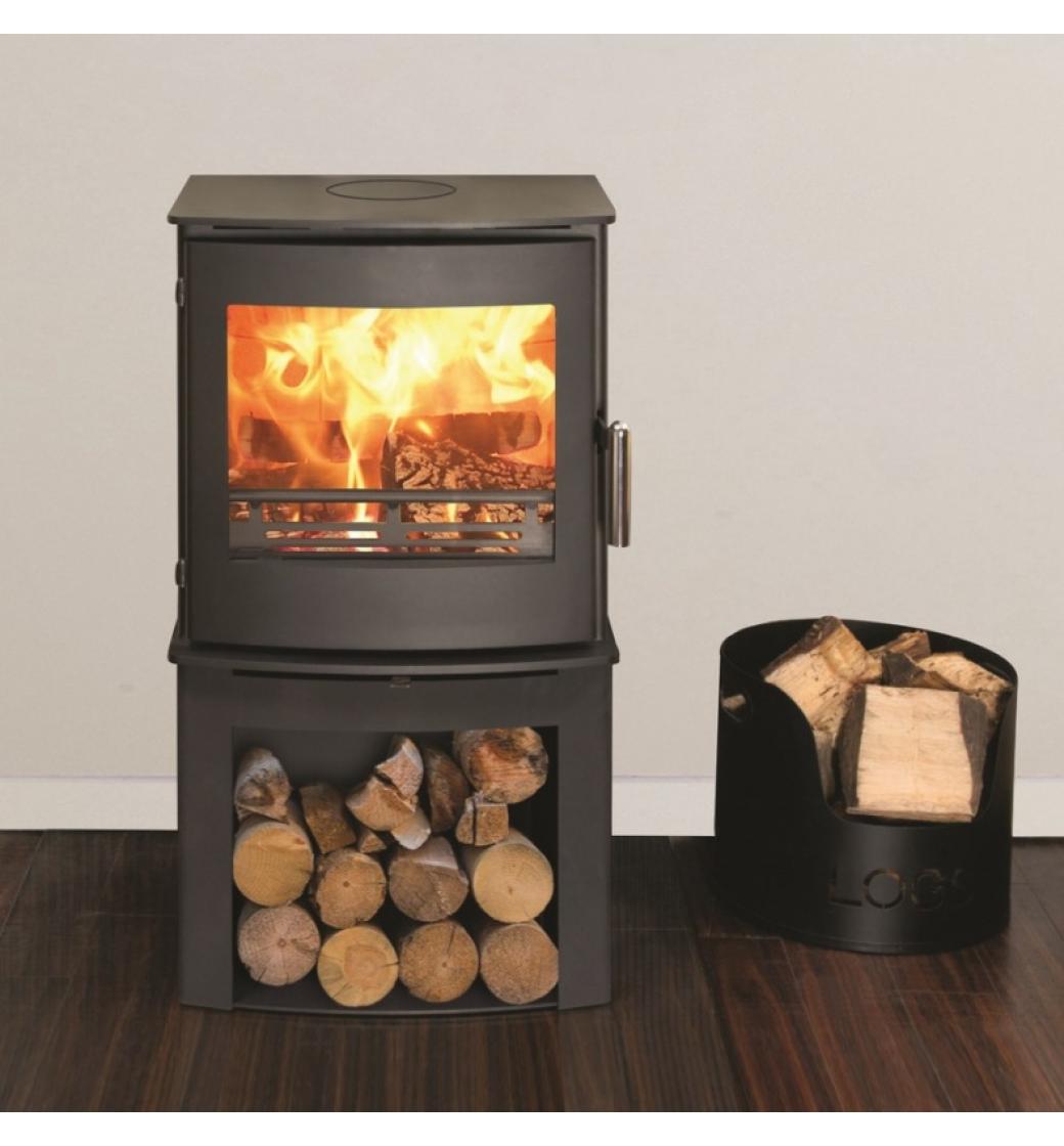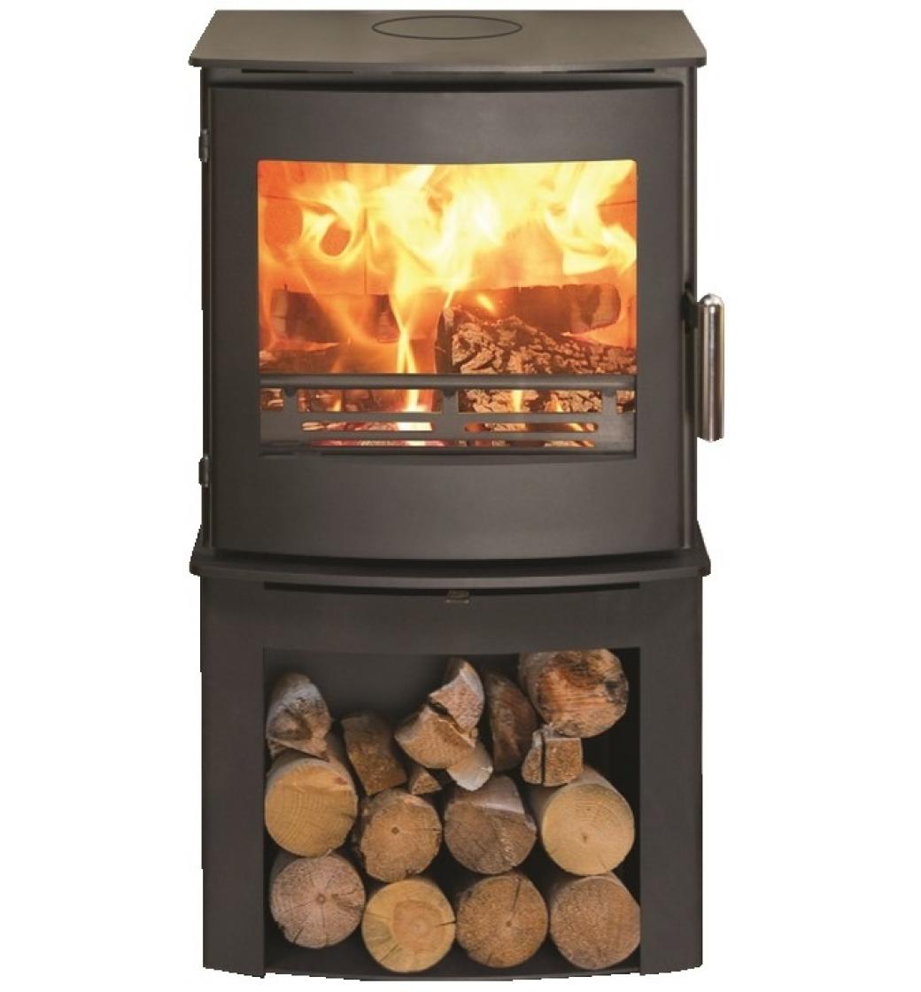 Široká spalovací komora umožňuje pohodlné přikládání polen dlouhých až 38 cm a centrální přívod vzduchu umožňuje napojení na vzduch z exteriéru. Další výhoda je prostorný dřevník na uložení paliva.