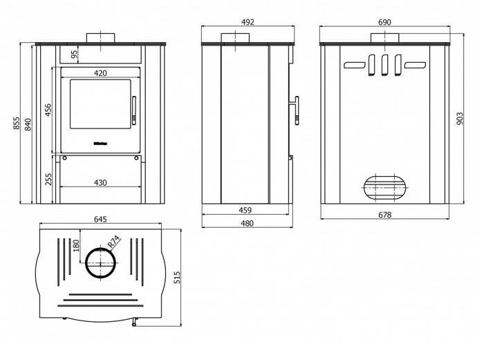 | Rozměr topeniště (Š x V x H): | 405 x 280 x 310 mm |