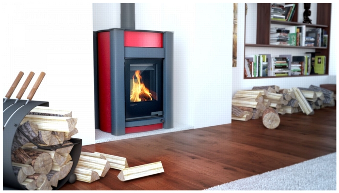 Krbová kamna HS Flamingo AQUAFLAM VARIO KALMAR 11/7kW červená, elektronická regulace
