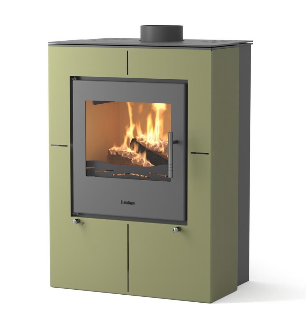 Detailní popis Krbová kamna FLAMINGO ® EVENES olivová