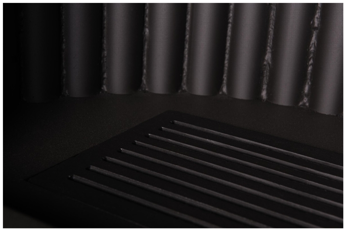 ve spodní části nasávají trubky studený vzduch, který se průchodem pláště velmi rychle ohřívá a je vyfukován do místnosti