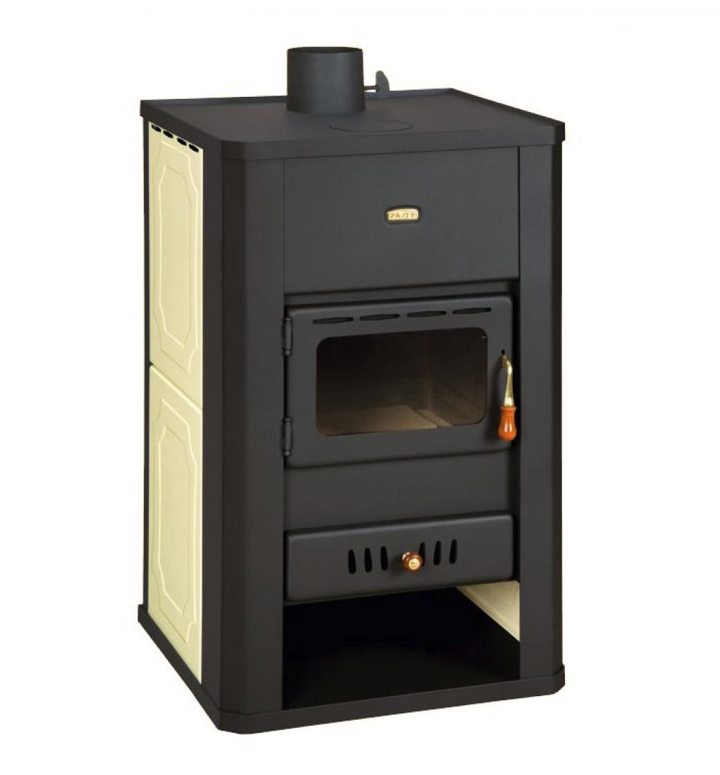 Výkonná krbová kamna s teplovodním výměníkem. Výměník je situován do 3 svislých stran kolem topeniště a vodorovně v příčce před odtahem spalin na výstupu z kamen. Součástí je litinový rošt. Na horní desce je umístěn čistící otvor. Přívod primárního vzduchu je regulovatelný přes popelník, sekundární vzduch oplachuje sklo a nelze jej regulovat. Horní strana kamen je lemována přesahující ocelovou lištou, která případně umožní vložení dlažby pro estetické dotvoření interiéru. Materiál: 3+4+5 mm plech, samovypalovací černá barva