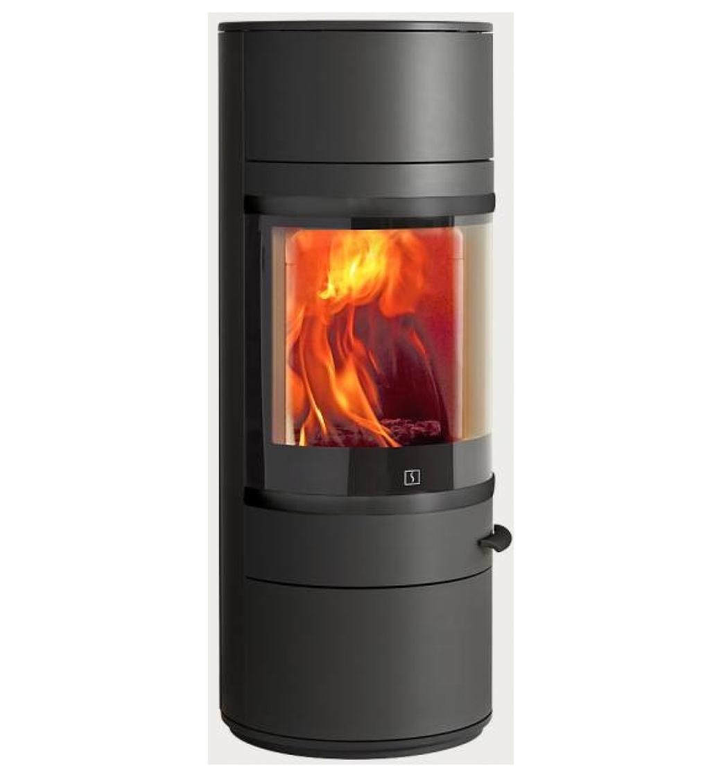 Velká panoramatická dvířka mají chladnou kličku. Opláštění je v několika barvách s černými lištami na dvířkách. Kamna lze vybavit otočným podstavcem a horní deskou z mastku.