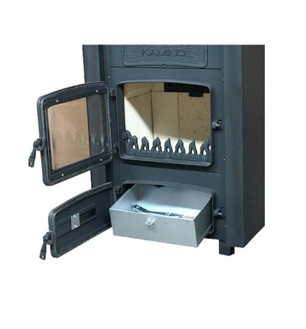 Kamna jsou vyrobena z kombinace litiny a ocelového plechu, což zajišťuje robustní konstrukci a vysokou odolnost. Litinové díly zahrnují horní desku a prosklená přikládací dvířka, která umožňují pohodlné přikládání dřeva nebo uhelných briket. Spalovací komora vyložená šamotem podporuje rovnoměrné hoření a efektivní akumulaci tepla.