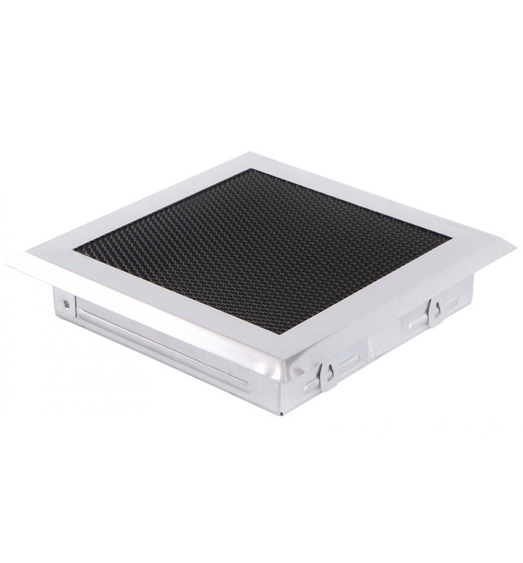 Ventilační mřížky různých rozměrů a v několika barvách. Ocelové s montážním rámečkem, lakované práškovou barvou vysoké kvality, která je odolná vůči vysokým teplotám. I po několikaletém provozu zachovává svůj původní lesk a odstín. Mřížky plní též funkci dekorační. Slouží ke clonění ventilačních otvorů. Jsou vyrobeny z ocelových částí a příslušně upraveny technologickým procesem. Tento typ mřížek je určen pro montáže do komínových sopouchů, stěn a podlah (nepoužívat na stropech).Krbové mřížky - hranaté