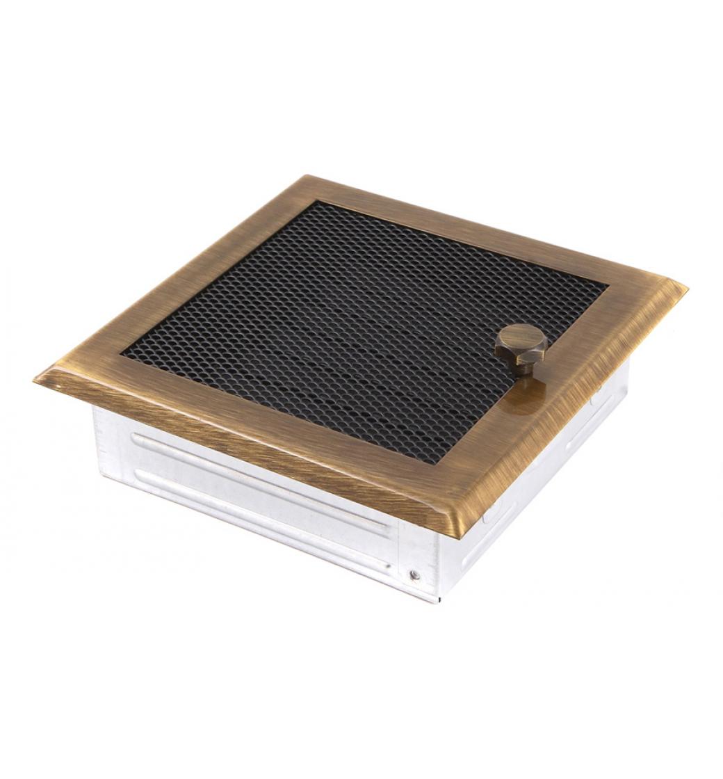 Krbová mřížka 16x16cm s žaluzií mosaz patina