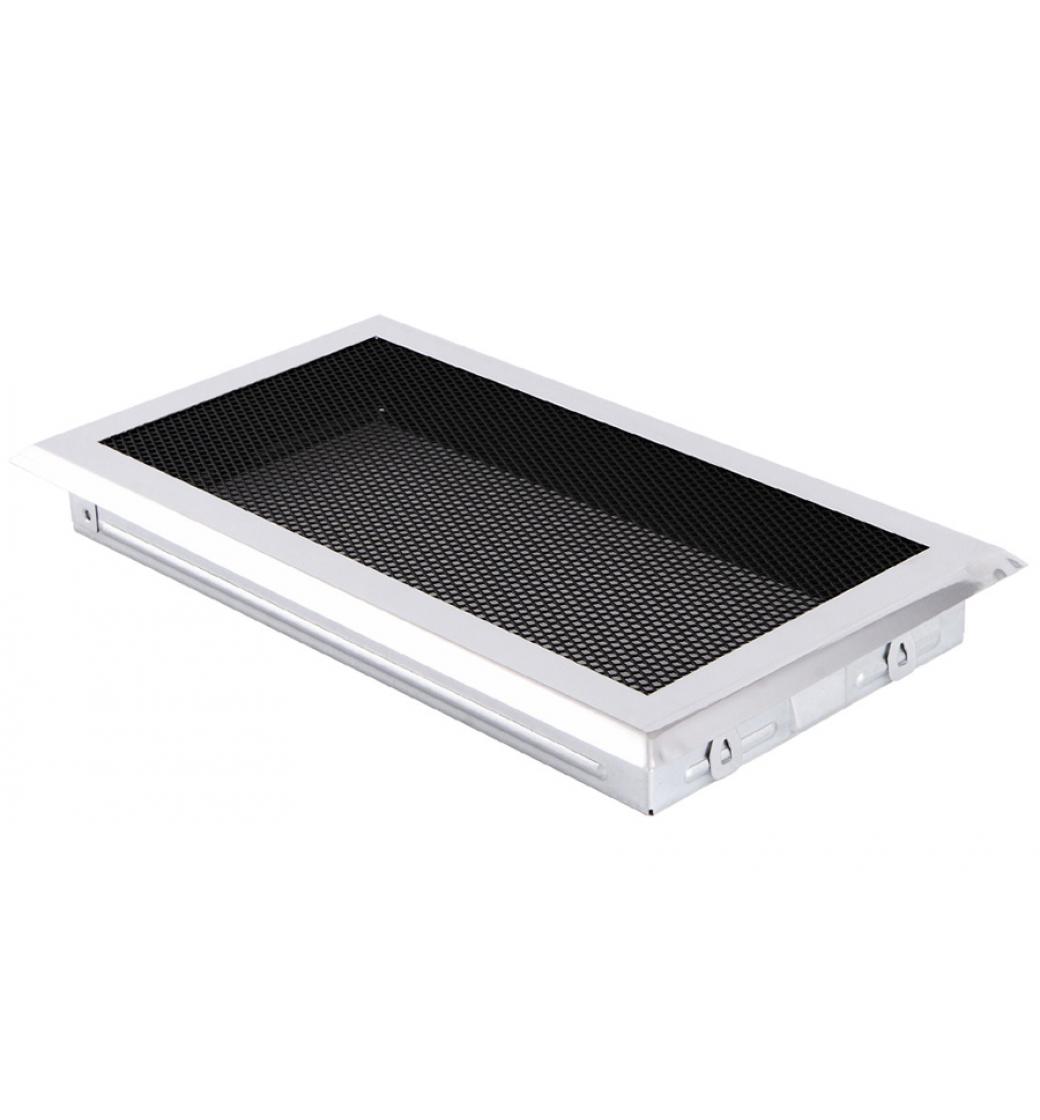 Ventilační mřížky různých rozměrů a v několika barvách. Ocelové s montážním rámečkem, lakované práškovou barvou vysoké kvality, která je odolná vůči vysokým teplotám. I po několikaletém provozu zachovává svůj původní lesk a odstín. Mřížky plní též funkci dekorační. Slouží ke clonění ventilačních otvorů. Jsou vyrobeny z ocelových částí a příslušně upraveny technologickým procesem. Tento typ mřížek je určen pro montáže do komínových sopouchů, stěn a podlah (nepoužívat na stropech).Krbové mřížky - hranaté