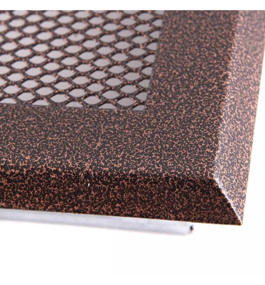 Ventilační mřížky různých rozměrů a v několika barvách. Ocelové s montážním rámečkem, lakované práškovou barvou vysoké kvality, která je odolná vůči vysokým teplotám. I po několikaletém provozu zachovává svůj původní lesk a odstín. Mřížky plní též funkci dekorační. Slouží ke clonění ventilačních otvorů. Jsou vyrobeny z ocelových částí a příslušně upraveny technologickým procesem. Tento typ mřížek je určen pro montáže do komínových sopouchů, stěn a podlah (nepoužívat na stropech).Krbové mřížky - hranaté
